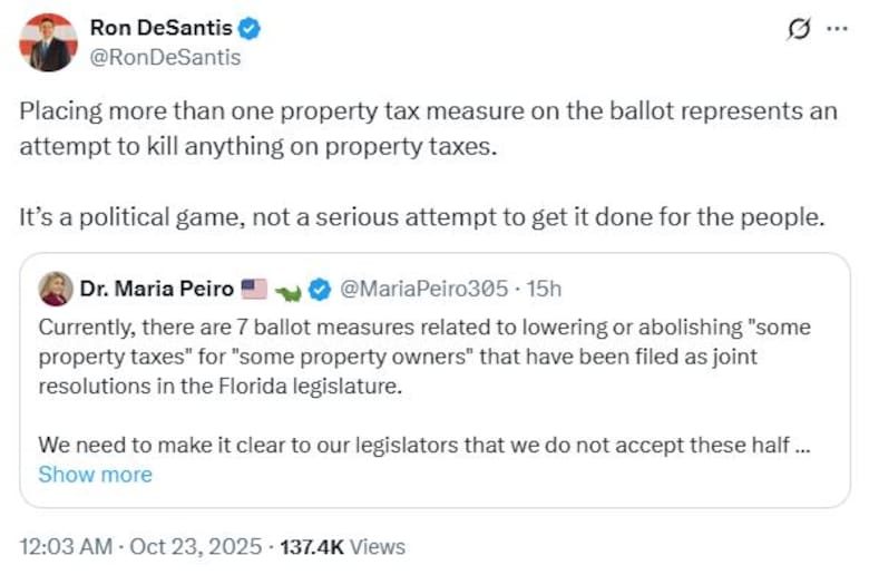 La crítica directa de Ron DeSantis a los legisladores republicanos por los impuestos a la propiedad